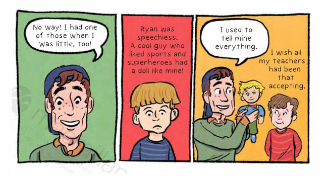 Before Other Boys was a script, or even an outline of a script I knew that I wanted the illustrations to be filled with color. For me, color is as important as the drawings themselves, and almost as important as the actual story. I was a little worried about how this choice would be received because many of the graphic memoirs I’ve read have very muted color pallets that match the (often melancholy) tone of these true stories. But I knew I didn’t want that. From the beginning, I had imagined the color scheme and illustrations would juxtapose the story, and helping to soften the sadder sequences.