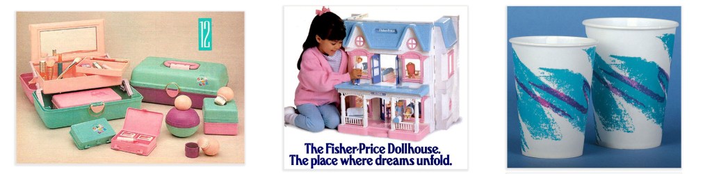 To me, these soft pastels and shapes will always feel very early 90s, and while the majority of my life was in the 00s, these colors remind me of my mother. The funky vintage Taco Bell designs, that iconic 90s cup (pictured above), the pastels of “girls” toys of the time. For me, they always come back to my mother. It’s interesting how colors have meanings, and bring memories, nostalgia and all sorts of feelings along with them.