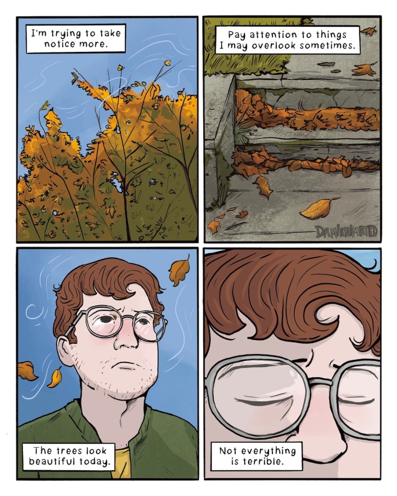 I’ve been feeling melancholy lately, but making a point to be aware of the small pleasant things I see or hear or smell. The cool wind against my skin, the fresh smell when you cut open an apple, the soft moss growing on corners of the sidewalks. That sort of thing. 🍂