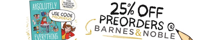 Preorder my newest graphic novel Absolutely Everything (that comes out September 9th!!!) at Barnes & Noble and get 25% off!!! (From now until September 5th!) CLICK HERE TO PREORDER AT BARNES & NOBLE!! Life feels like a lot for Marcella. Sixth grade is overwhelming, her bestie has new friends, her parents want to move—absolutely everything … Continue reading 25% Off Preorders At Barnes & Noble (Until September 5th)
